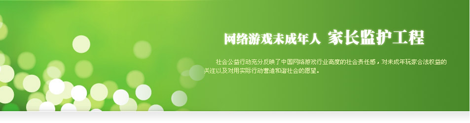“网络游戏未成年人家长监护工程”是一项由37游戏平台根据国家有关规定而发起的一个项目,由中华人民共和国文化部指导,旨在加强家长对未成年人参与网络游戏的监护,引导未成年人健康、绿色参与网络游戏,和谐家庭关系的社会性公益行动。它提供了一种切实可行的方法,一种家长实施监控的管道,使家长纠正部分未成年子女沉迷游戏的行为成为可能。该项社会公益行动充分反映了中国网络游戏行业高度的社会责任感,对未成年玩家合法权益的关注及对用实际行动营造和谐社会的愿望。